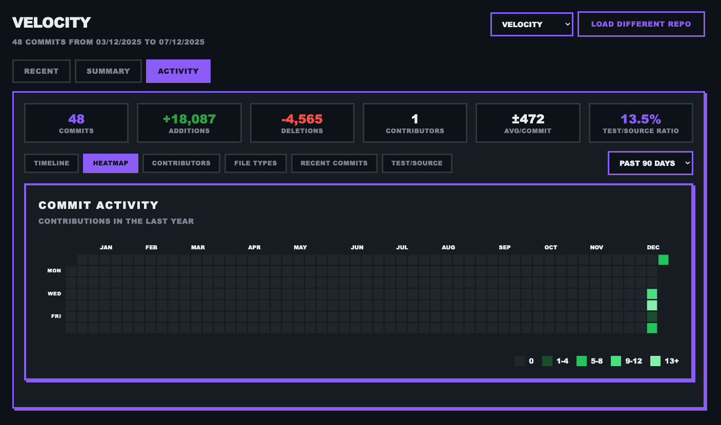Teams often lack visibility into their project's development patterns and contributor activity. While version control systems track every change, the raw data is difficult to interpret. Most tools surface numbers without explaining what they mean or why they matter.